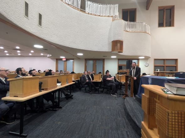 At Kollel Lomdei Torah, Rabbi Gersten delivered a shiur on the halachos and OU practices related to bedikas tolayim. Later, at Minneapolis Community Kollel, he spoke about the halachos that caterers must adhere to around Shabbos food preparation, including shehiya, chazara, and hatmana. He also discussed halachos related to OU Kosher-certified appliances, including those with Shabbos modes or recalibration features.
