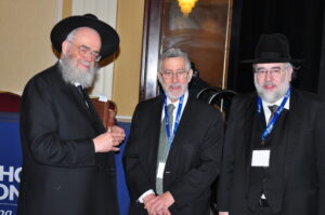 L to R at the OU Kosher Kashrus Conference: Yeshiva of Paterson Rosh Yeshiva Rav Elya Chaim Swerdloff, Rabbi Menachem Genack and Rabbi Moshe Elefant