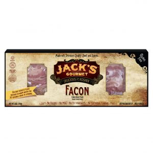 Today, Jack’s Gourmet offers a full variety of meat products, most of which were not available to the Kosher consumer ten years ago. Products such as Sweet Italian Sausage, Spicy Mexican Chorizo Sausage, Facon (beef bacon) and BBQ Pulled Brisket allow Kosher consumers to prepare traditionally non-Kosher recipes with ease.